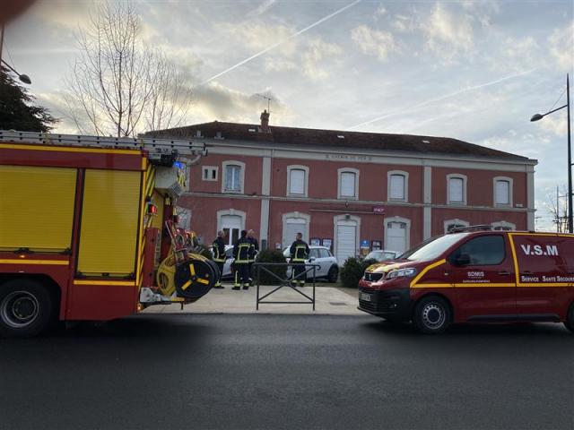 | Les secours mobilisés en gare de Sathonay-Rillieux © Radio SCOOP/Philippe Lapierre |
