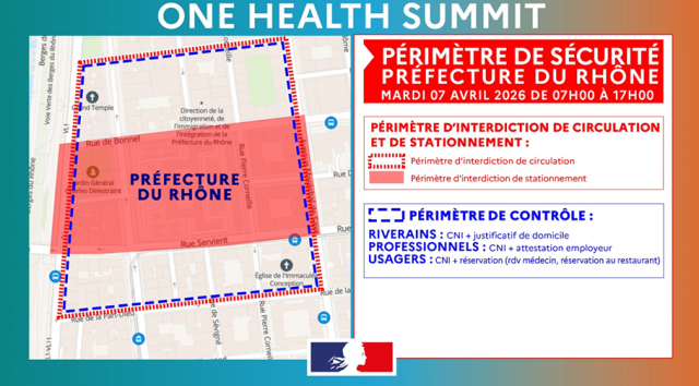 Tout d'abord, un périmètre sera mis en place autour de la préfecture du Rhône dans le 6e arrondissement.